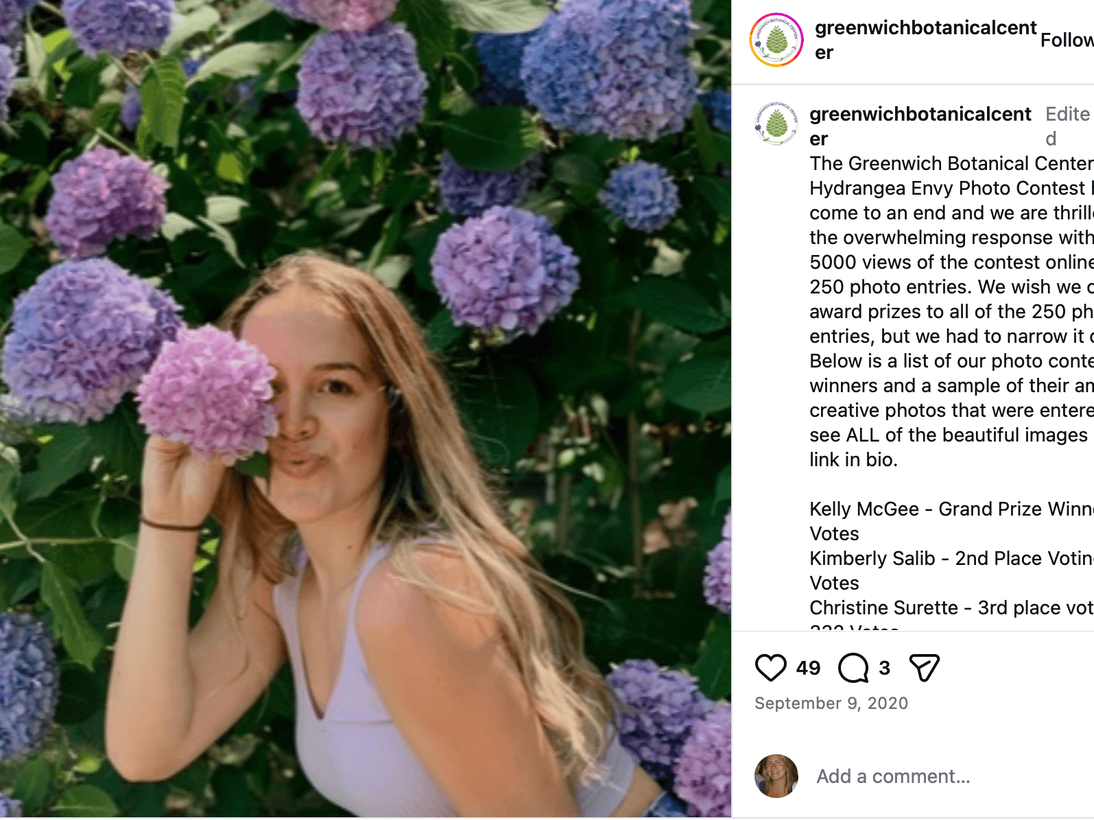 The Greenwich Botanical Center’s Hydrangea Envy Photo Contest had an overwhelming response with over 5000 views of the contest online and 250 photo entries. We wish we could award prizes to all of the 250 photo entries, To see ALL of the beautiful images entered, link here: