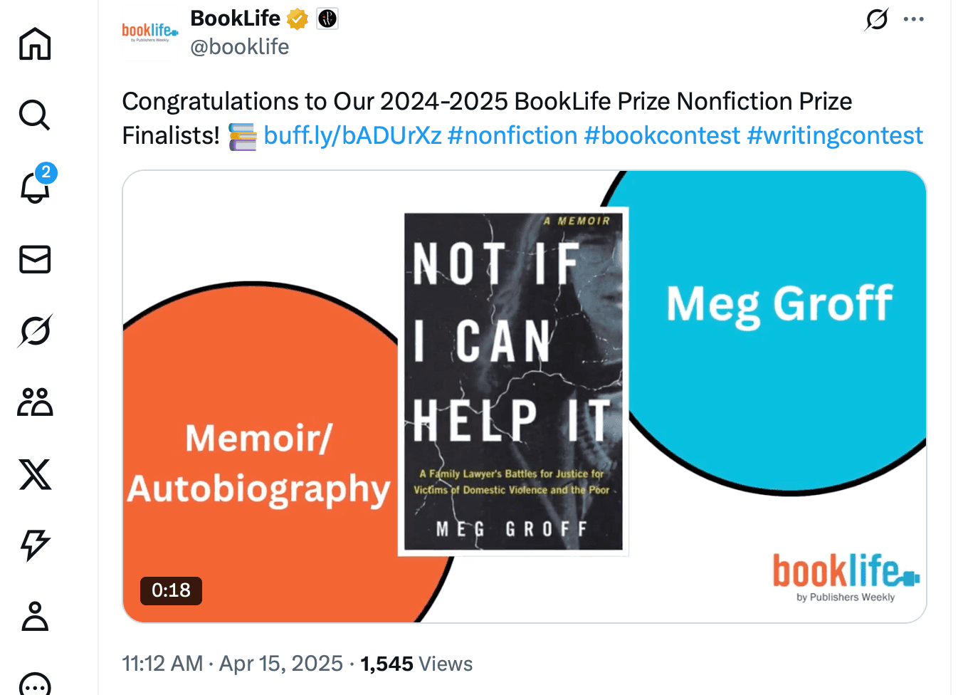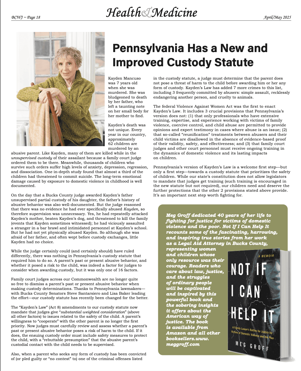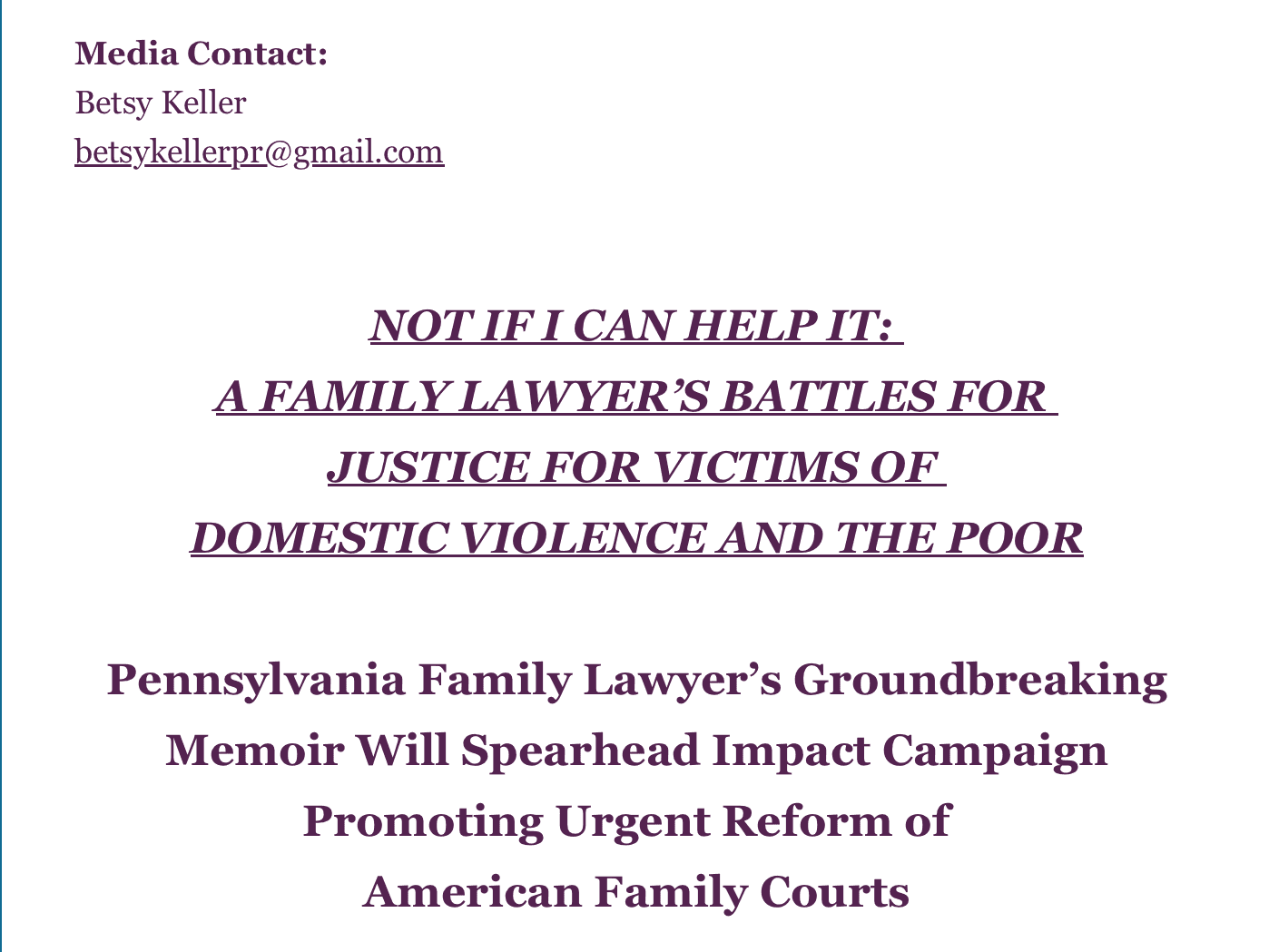 Objective: Amplify publicity for the book launch for Not If I Can Help It and establish author Meg Groff as a credible voice in domestic abuse advocacy and family court reform legislative efforts.