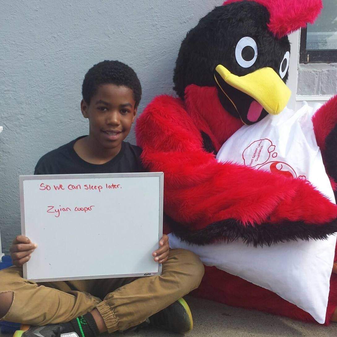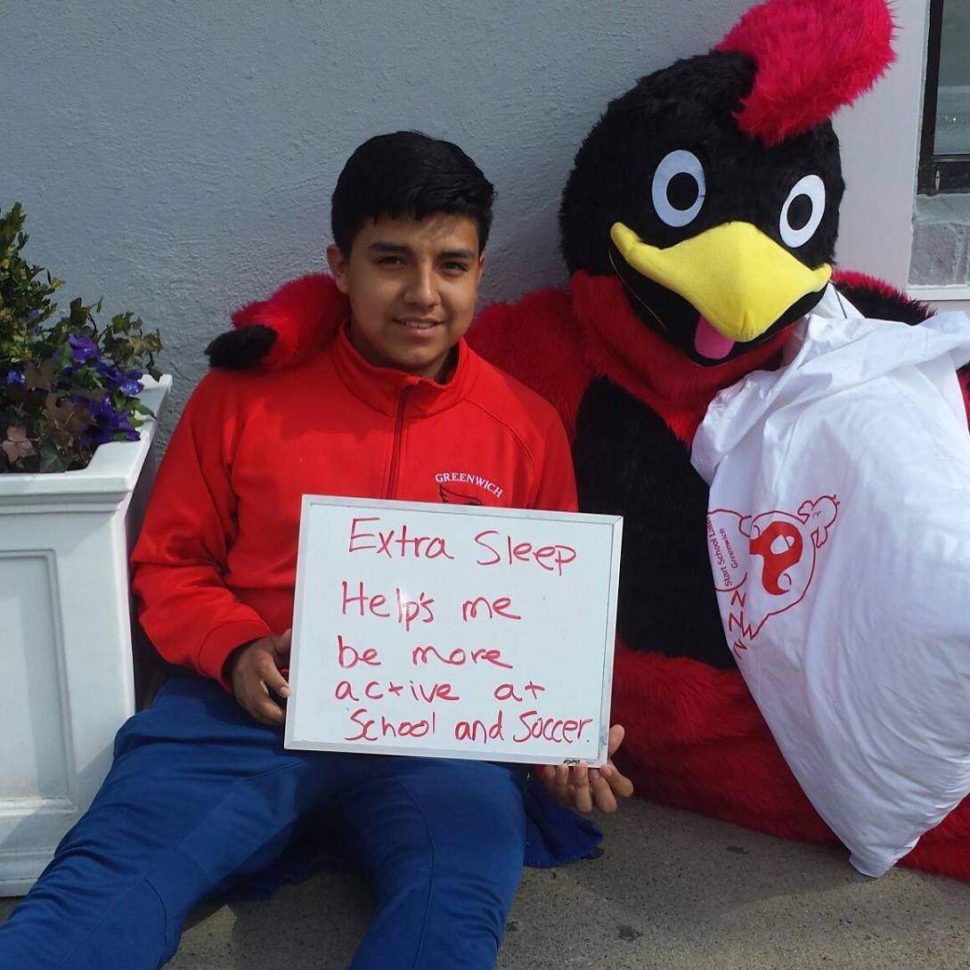 The initiative aimed to teach middle- and high-schoolers about the importance of healthy sleep habits by asking them to post on Facebook and Snapchat selfies of themselves with students dressed up as Greenwich High School’s Cardinal mascot, with captions that explain why they need another hour of sleep.