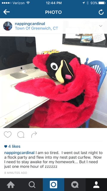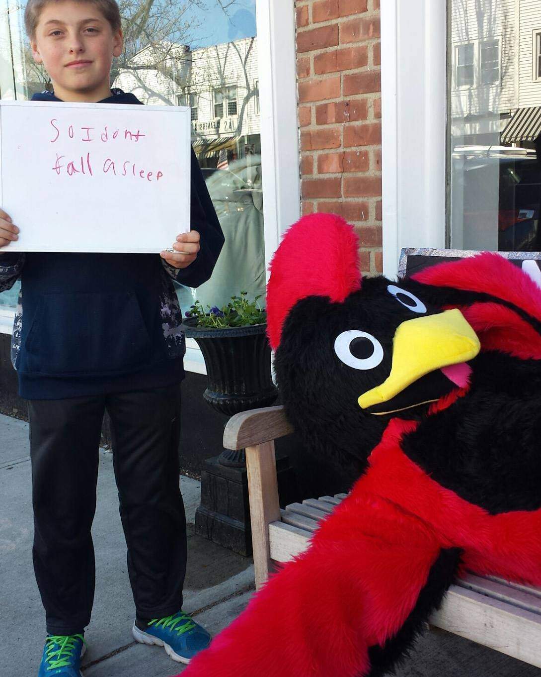 The Cardinal took “naps” at popular teen hangouts including Starbucks and Greenwich Library throughout the contest and the challenge was for the kids to find the sleeping bird. Once they found the bird, they filled out a sign with why they needed another hour of sleep and posted the photo to social media.