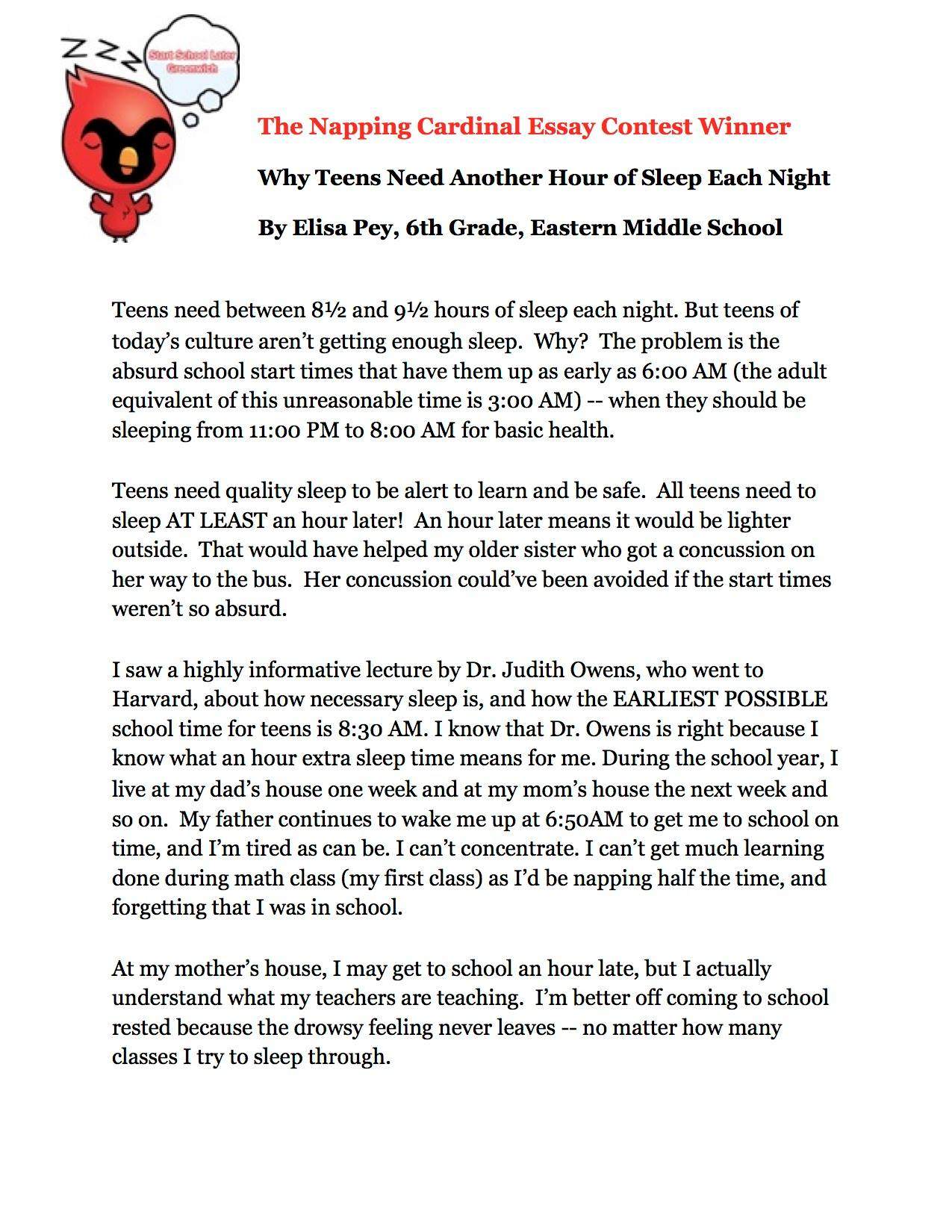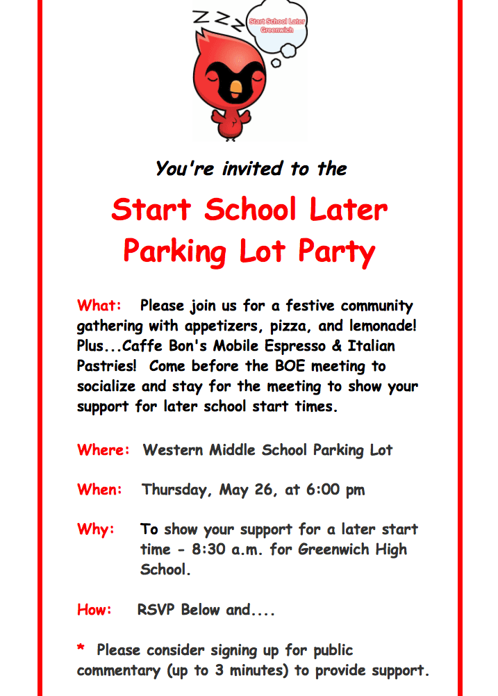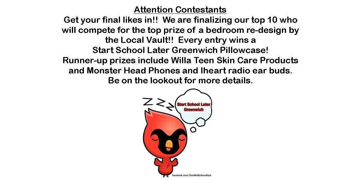 “This is a fun campaign for teens to raise awareness of good sleep habits,” said Start School Later Greenwich intern Greg Goldstein. “Adults preach to us all the time, telling us to study and what to eat — and we zone out. We are hoping this Give Me My Hour Back contest will open teens’ eyes, literally, about how important good sleep habits are to ensure good health now and in the future.”
